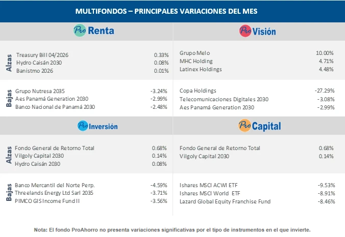 Todos los rendimientos del mes de marzo de 2026 son en moneda local. Los datos presentados son con base a la información pública más reciente.