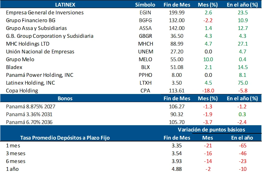 En Latinoamérica, el desempeño fue mixto. La bolsa de Argentina se destacó con un alza de 13.5%, impulsada principalmente por las acciones del sector petrolero, beneficiadas por el aumento del precio del crudo. Colombia también mostró un avance del 2.9%, mientras que México (-3.9%), Chile (-2.2%) y Brasil (-0.7%) cerraron el mes con caídas moderadas.