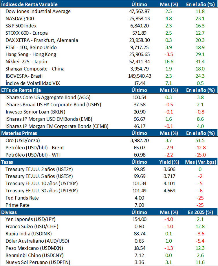 Todos los rendimientos del mes de octubre de 2025 son en moneda local. Los datos presentados son con base a la información pública más reciente.